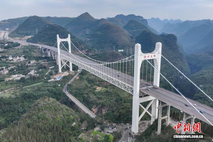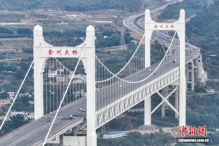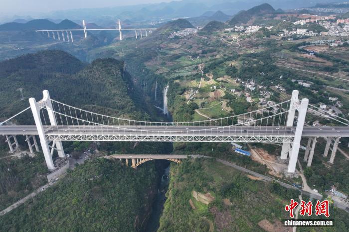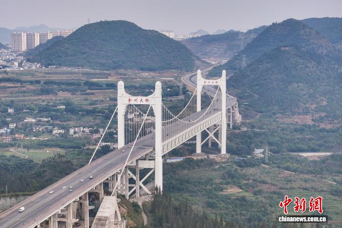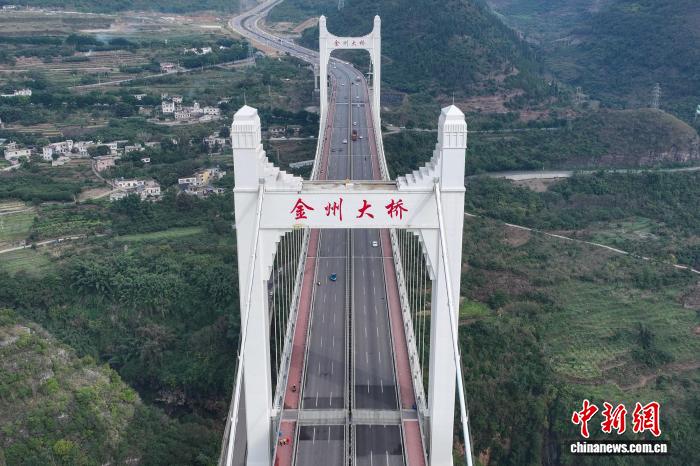 11月20日,航拍贵州兴义金州年夜桥。金州年夜桥位于贵州省黔东北布依族苗族自制州兴义市,齐少1600米,主跨450米,桥下235米。金州年夜桥将下桥技能取旅行阅历相联合,依靠逾越马岭河峡谷重心景区上风,翻新挨制了“桥上瞰江山、桥停不雅飞瀑”等为1体的桥旅新形式。(无人机像片)中新社记者 瞿宏伦 摄